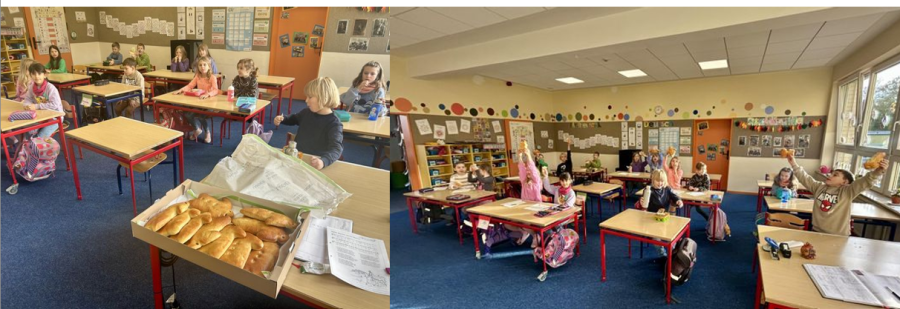 Die Klasse 2c beschäftigte sich am Martinstag (11.11.2025) mit der Geschichte von Sankt Martin. Natürlich erzählte Klassenlehrerin Frau Hantelmann ihrer Klasse die Legende über den Mann, der sich großzügig für seine Mitmenschen einsetzte und seinen Mantel teilte. Passend dazu, und nach heutiger Tradition, gab es Weckmänner, die während des Martinslieds feierlich unter den Kindern geteilt wurden. Das war lecker! Abgerundet wurde die Unterrichtsstunde mit einer Sankt Martin Klanggeschichte.